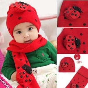 Beetle Winter Warm Baby Hats Scarves 2 in 1 (Red): Amazon