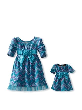 Category: Girls Vendor: 95% polyester/5% spandex Machine Wash Caterpillar sleeves Tack on bow with tails at waist of dress Matching doll garment